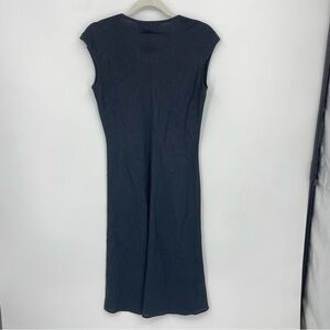 100% Linen French Connection midi Dress black tie keyhole neck Sz 6 cap sleeve