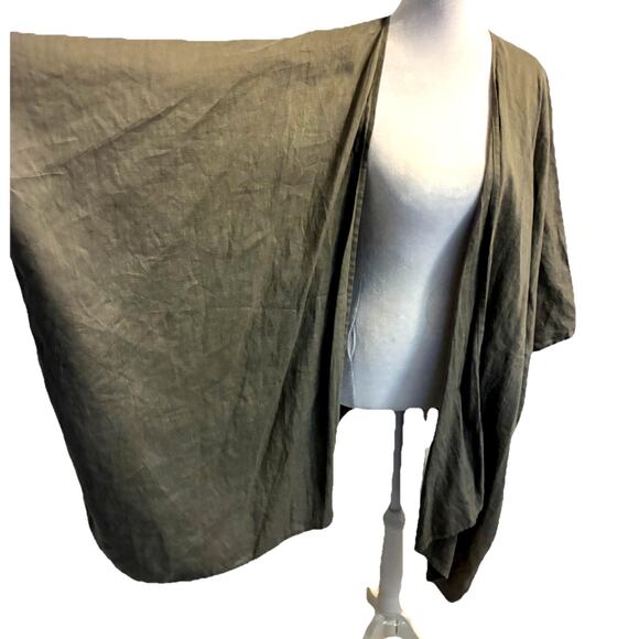 100% Linen Kimono Cardigan Gray Minimalist Oversized Womens Open Front USA OS