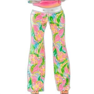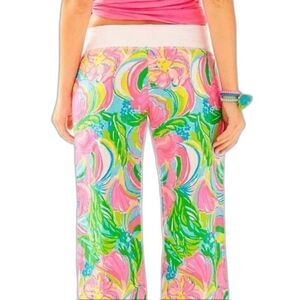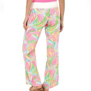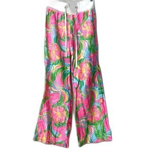 100% Linen Lilly Pulitzer The Beach Pants Pink Multicolor Elastic Waist XS