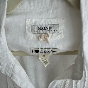 100% Linen Malvin Hamburg Germany White Linen Button Down Blouse Size S