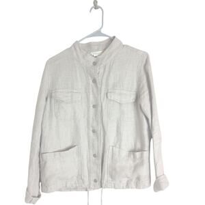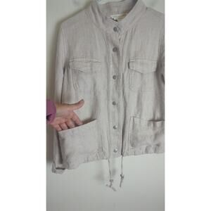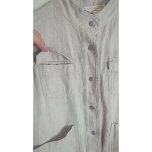 100% Linen Mnimalist Snap Button Down Jacket Pockets Oversized XS
