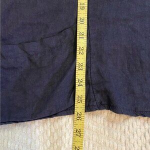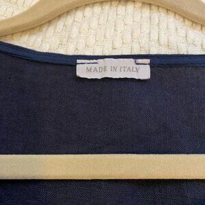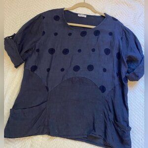 100% Linen Navy Blue Polka Dot Blouse With Pockets & Roll-Up 3/4 Sleeves Size L