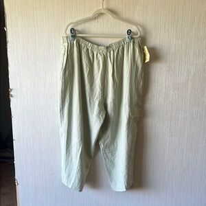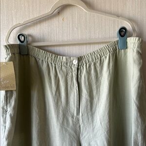 Elevate your style with these chic light green capris. Designed for comfort and versatility, they are perfect for any casual outing. 100% Linen