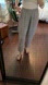 100% linen ankle length pants with zip detail. Generous stretch in the elastic waistband but best fit for a medium. For reference I am a size medium, 28 in jeans, 8 in most bottoms and these fit great. There is a slight taper at the ankle that gives these a contemporary lantern pant feel. The zippers at the ankle create a nice drape. Pockets! Note there is some wear in the fabric as noted in the pictures.