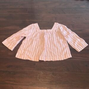 100% Linen Rachel Zoe Rose and Cream Striped Blouse, sz Large.