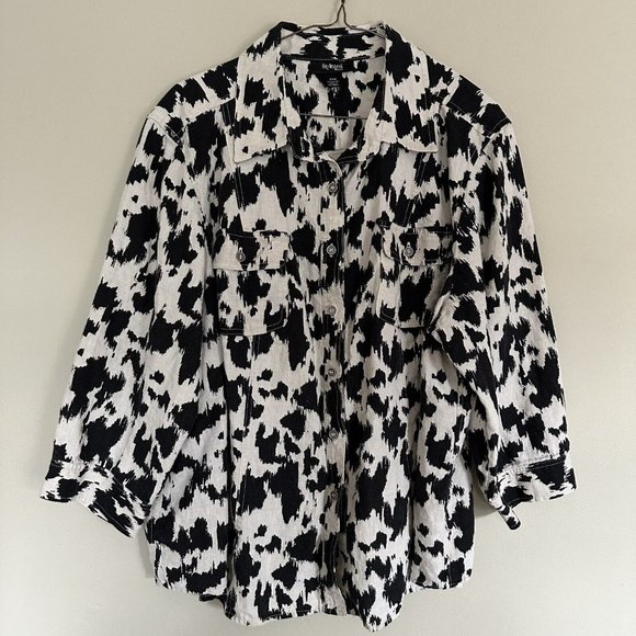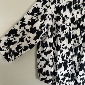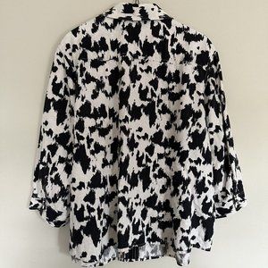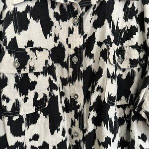 100% Linen Shirt Woman Blouse White Black Size 22W.