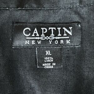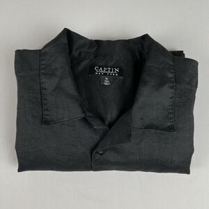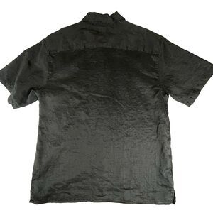 100% Linen Short Sleeve Button Up Shirt Men's XL Black Havana Summer Casual Cool
