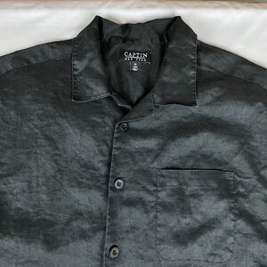 100% Linen Short Sleeve Button Up Shirt Men's XL Black Havana Summer Casual Cool.