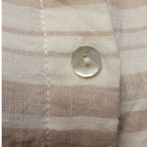 100% Linen Striped Button Up Tunic Top Resort Coastal Euro Summer Cruise Size M