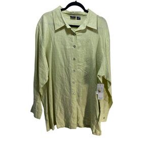 100% Linen Top Tunic Button Up Shirt Womens 2X New Leaf Mother Pearl Buttons