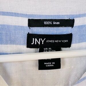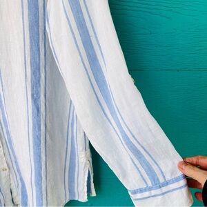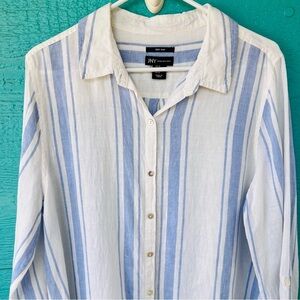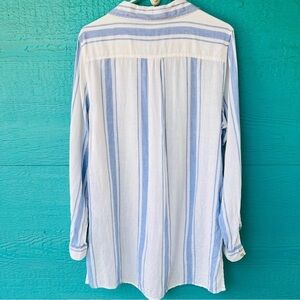 100% Linen Vertical Stripe Longline Button Down Boyfriend Beachy Shirt Size XL