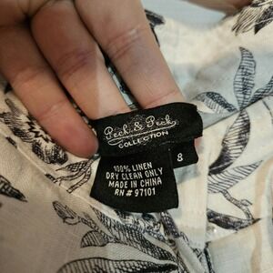 This is a gorgeous 100% linen beachy pant. Perfect for warm breezy days. From the brand Peck and Peck Collection. NWOT- linen has that crispy never been worn feel. Beautiful feminine bird and floral print. Working drawstring but still has a button and zipper closure. No flaws or issues to disclose.