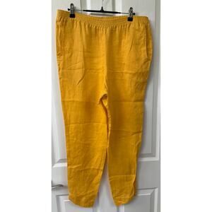 100% Linen mustard yellow pants pull on pants slanted ankle L Studio workshop