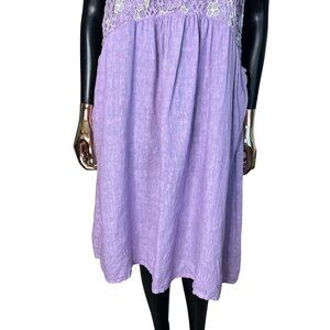 100% Lino Made in Italy Lilac Linen Midi Dress w/ Lace Top & Pockets