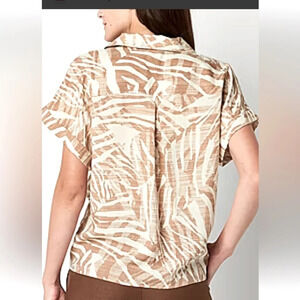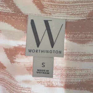 Worthington’s NWT soft collared blouse size small. Animal print like design with V-neck gives way to the hidden button front. Also has chest pockets.