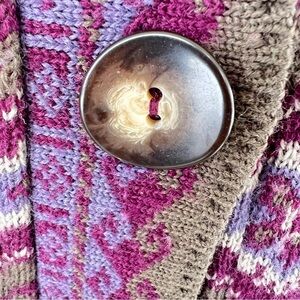 100% MERINO WOOL VINTAGE BUTTON FRONT CARDIGAN PURPLE GREEN SIZE LARGE