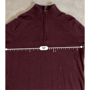 100% Merino Wool Mens Half Zip Large maroon. See pics for measurements. No holes or stains. Lightweight.