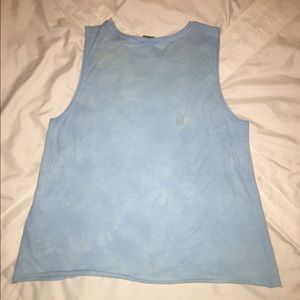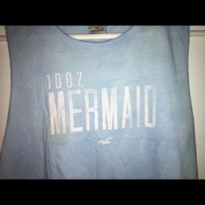 Calling all mermaids!! Distressed light blue muscle tank top from Hollister. "100% Mermaid" written on front across chest in white glitter. Relaxed fit, very soft. Worn once as a beach cover-up. **Looks stained but I asked before I purchased it. It is distressed to look this way**