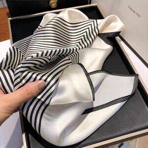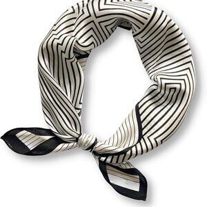 100% Mulberry Silk Neck Scarf 21"x21" Black & White Stripes