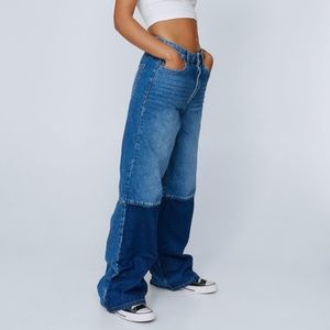 100% Organic Cotton Colorblock Wide Leg Jeans