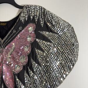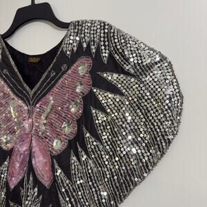 100% PURE SILK Vintage 70s 80s Sequins Butterfly Blouse M/L Medium/Large OSFM