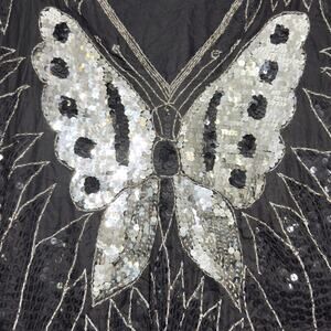 100% PURE SILK Vintage 70s 80s Sequins Butterfly Blouse S/M Small Medium OSFM