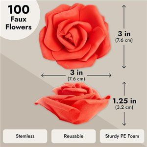 🧿Package Contents: In our foam red roses artificial flowers bulk pack, you will receive 100 artificial rose flower heads for crafts, as wedding centerpieces for tables, Easter decorations, Valentines decor, and spring wreaths