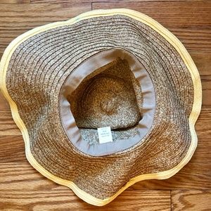 This floppy summer hat is made 100% of paper (other than the ribbon). Perfect for looking cute while protecting your face from harmful rays :) My friend gave this to me with that small green stain you can see in the first two photos, but I've actually never worn it.