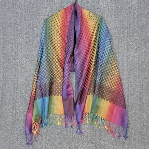100% Pashmina Scarf Womens Multicolor Polka Dot Fringed Long Wrap Shawl 68x27.