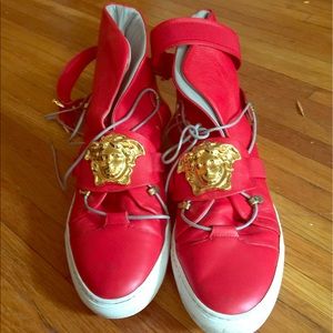 Red with gold emblem Versace sneakers size 43 1/2 100 percent authentic!!!!