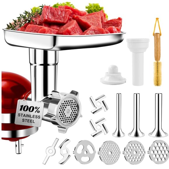 100% Polished Stainless Steel Meat Grinder Attachment for KitchenAid Mixer