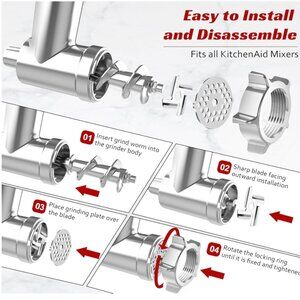 304 STAINLESS STEEL 5X HARDER, BUILT FOR A 50-YEAR LIFESPAN: Professional KitchenAid mixer meat grinding attachment resists bending and deformation. Boasting 5x hardness of regular stainless steel, it guarantees reliable use for a lifetime. Mirror-polished stainless steel blocks acid and alkaline corrosion. 100,000-cycle salt spray testing confirms 15 times better corrosion resistance than regular. Effortless Cleanup, as quick water rinse restores meat grinder for kitchenaid mixer instantly with no leftover residue or odors. Ideal gift for xmas