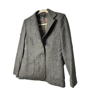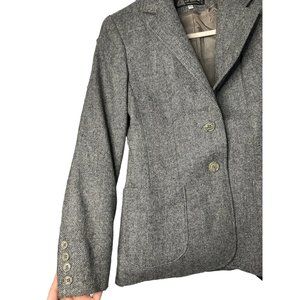 100% Pure Virgin Wool Button Up Ladies Gray Career Wear Blazer Jacket SZ 7/8