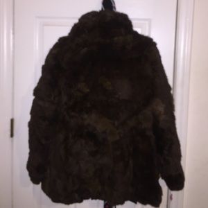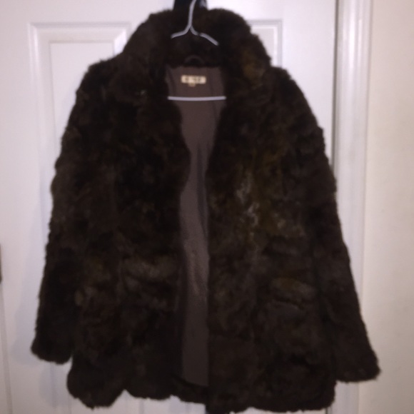 Rabbit Fur Fully Lined..size says 14 but I myself wear an 8 and it fits perfect.