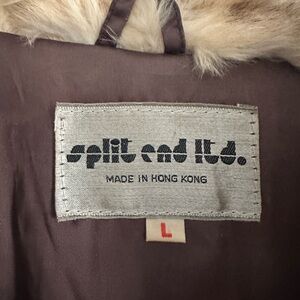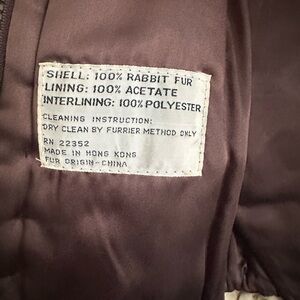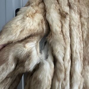 100% rabbit fur coat. Size large, but runs on the smaller side. Small tear under left arm as noted in pics.