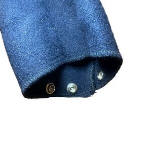 This is a men's XL+ blue Fire Resistant Jacket made in the United States. It is crafted from 100% Reprocessed Wool, providing protection in industrial settings. The jacket has a chest measurement of 48 inches and length is 33" and is designed as Personal Protective Equipment (PPE) for safety in work environments. Heavyweight. Excellent condition. No rips/holes/tears/excessive stretching/stains/discoloration/snags. Kept in a smoke/pet free home.
