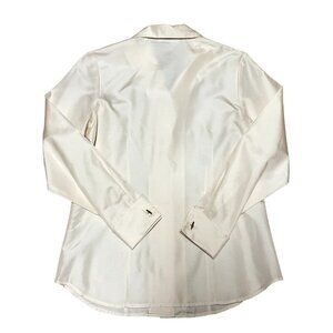 100% SILK CUFF LINKED BLOUSE SZ S CREAM VALERIE STEVENS BUTTON FRONT COLLARED