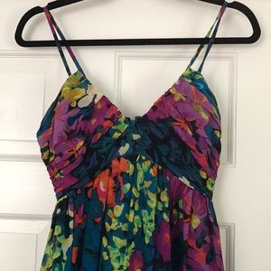 GORGEOUS Silk Cocktail Dress ๐Sz 6 but has been professionally altered on top (as seen in photo 4) but can be let back out (fabric was not removed, just tacked). 100% Silk. VIBRANT floral print. Flowy fabric and fitted top. Looks amazing on!!! Very flattering style
