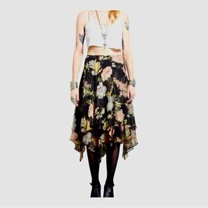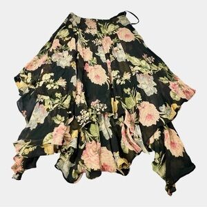 This is a beautiful Lauren by Ralph Lauren 100% shear silk vintage 90s, boho sheer layered hippie grunge chic handkerchief floral midi SKIRT with a lining. It has a hidden zipper on the side to make an easy on/off process. It is in excellent condition. Bohemian Women skirt Ralph Lauren Midi Skirt. Waist 26"