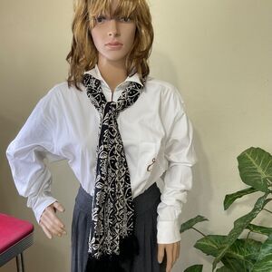 100 % SILK Mitra SCARF Women's 10”x 66” black /cream Rectangle Boho artsy print