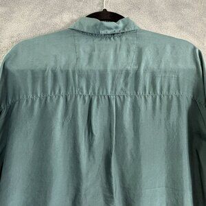 100% SILK Shirt Men Size M Green City Streets Button Down Short Sleeve 9-17