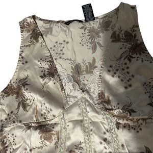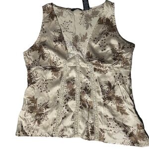 00s cream and brown floral lace cami top 100% silk lace is see through front and back zipper side closure