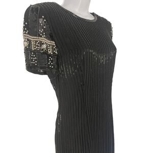 black trendy vintage 90s dress sequin dress detailied maximalist black dress little black dress cap sleeve shift dress