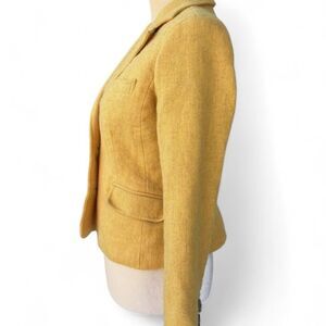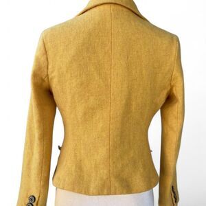 100% Shetland Wool Yellow Blazer W/ Statement Buttons Asymmetrical Pockets
