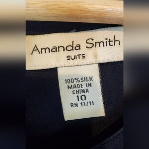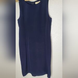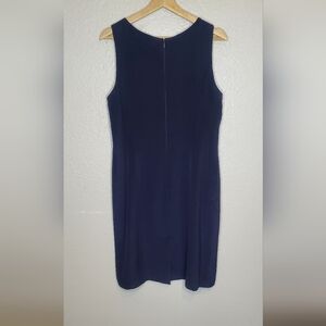 100% Silk Amanda Smith Navy Blue Sleeveless Classic Sheath Dress Size 10