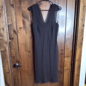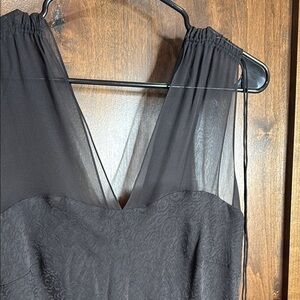 100% Silk Black Sheath Midi Dress V-Neck Donna Morgan Size 12 rose print sheer