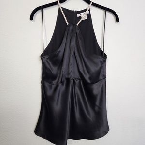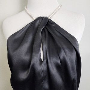 100% Silk Black and Pearl String Halter Top Women's Size 8