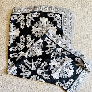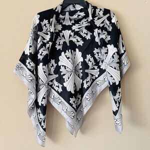 100% Silk Black and White Medallion Square Floral Scarf