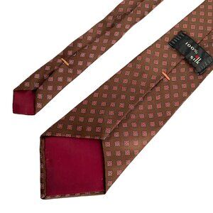 100% Silk Brown and Orange Diamond Pattern Mens Thin Necktie 58in