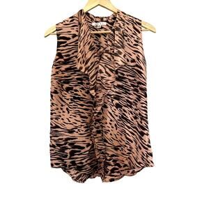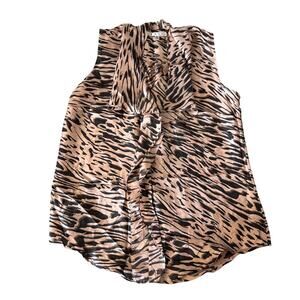 100% Silk Cabi Pink and Black Zebra Print Sleeveless Blouse